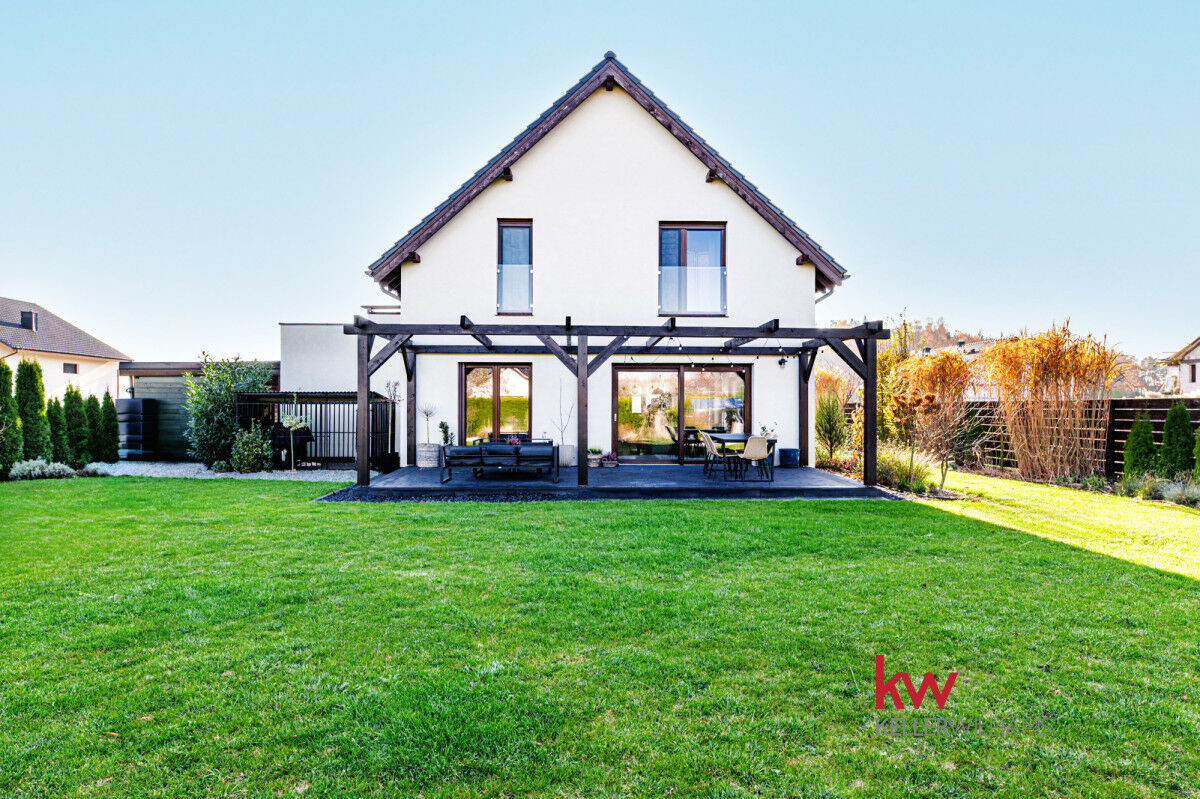 Duża działka i pięknie zagospodarowana działka daje przestrzeń do relaksu i zabawy dla dzieci. Taras przy salonie idealny na poranną kawę, grill czy letnie wieczory.